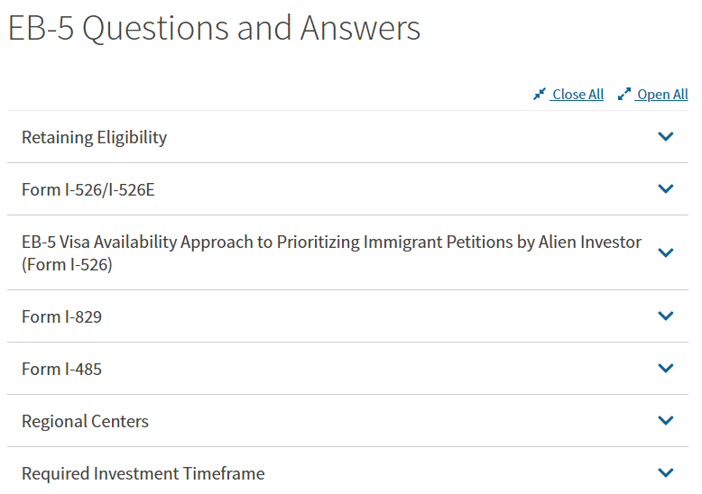 USCIS的问答涵盖了有关其政策应用的一系列问题,特别是与《EB-5改革与诚信法案》(RIA)实施相关的问题。